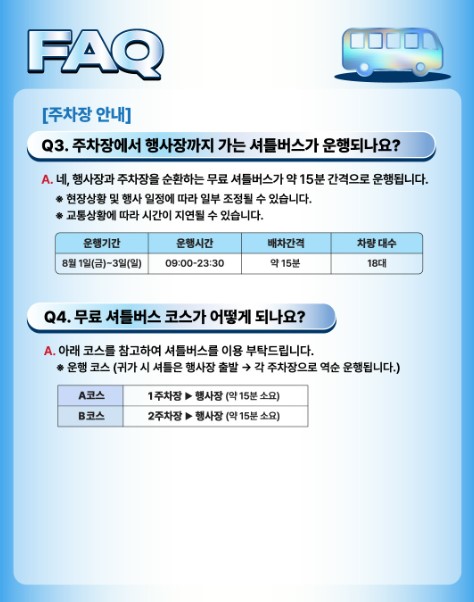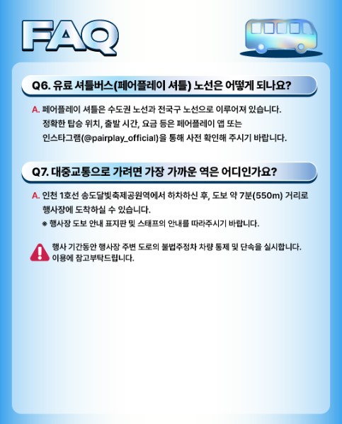 - 셔틀버스 : 2025년 ‘페어플레이’ 셔틀버스 운영 예정