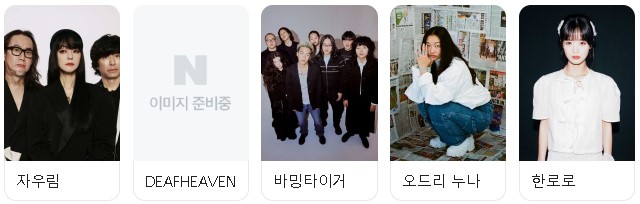 - 혁오, 선셋 롤러코스터, ADOY, 오마르와 동방전력 등